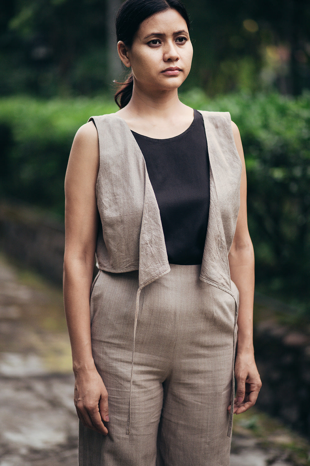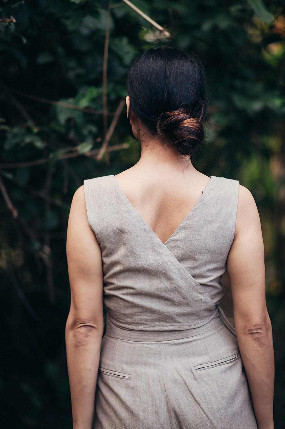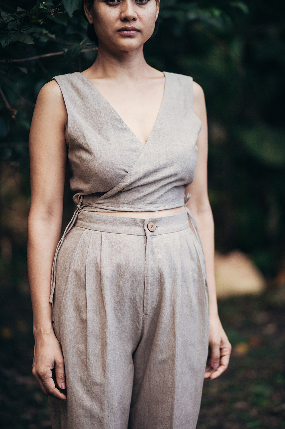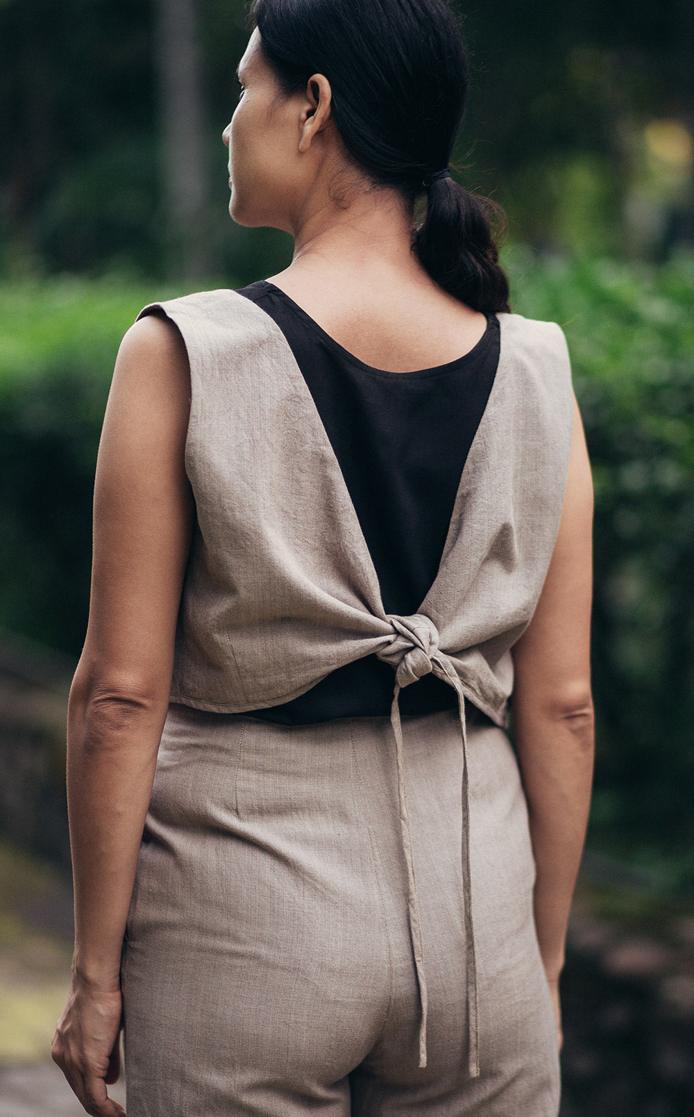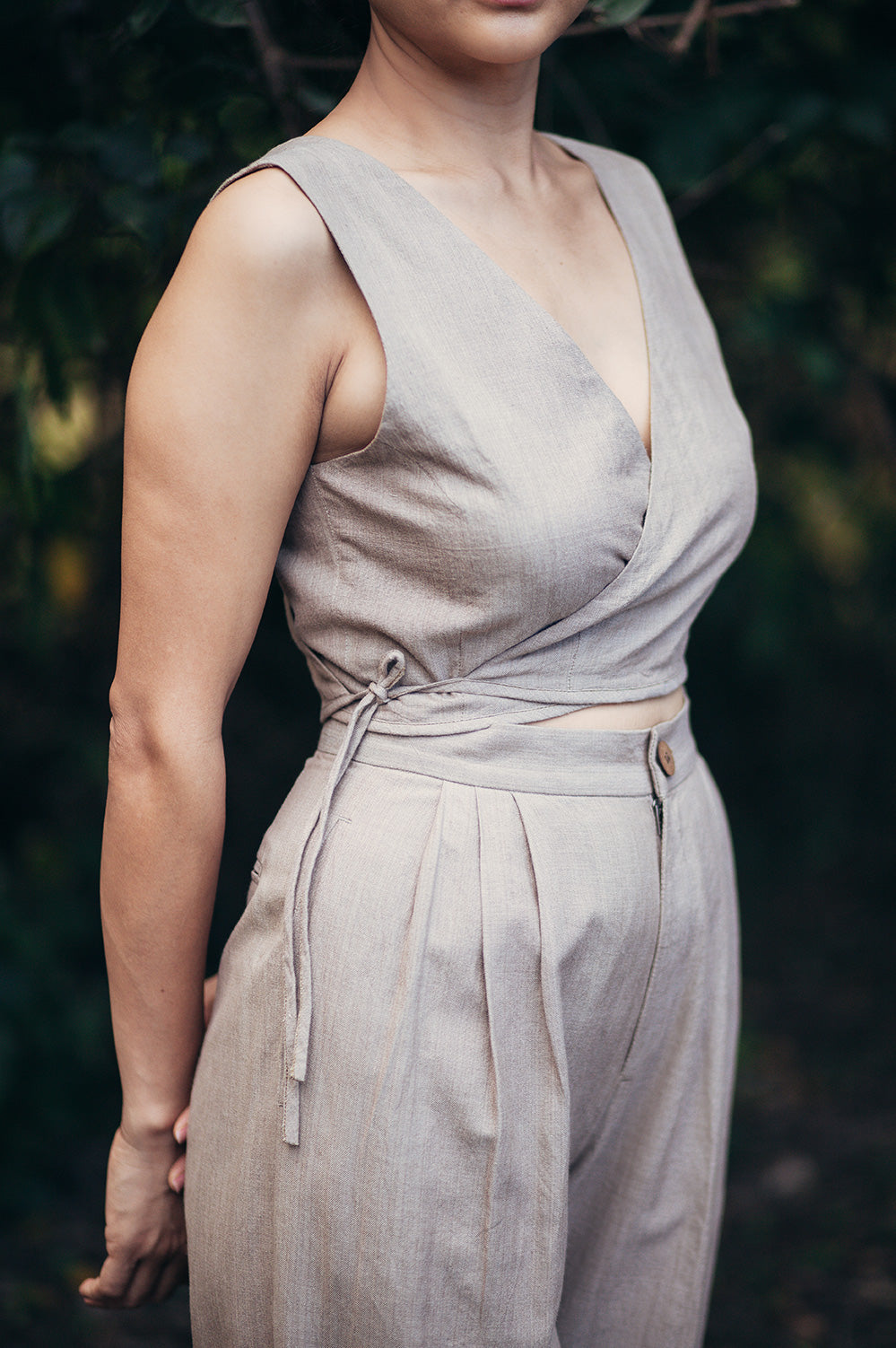 Adjustable, detachable, and designed to adapt. Soft ties wrap and rewrap, offering multiple silhouettes in a single piece.