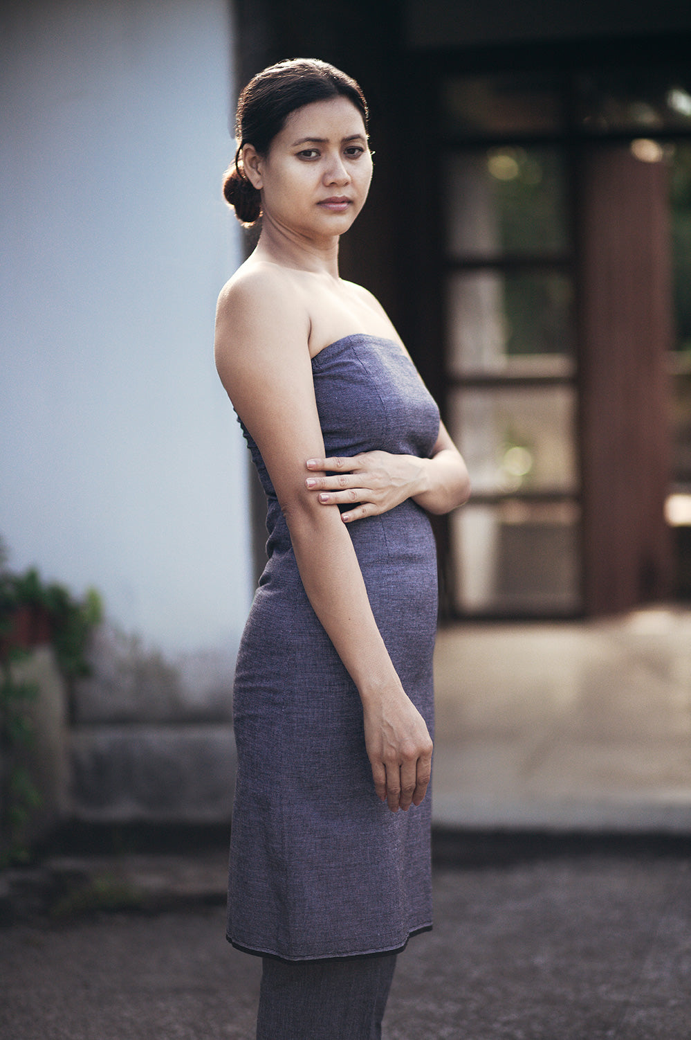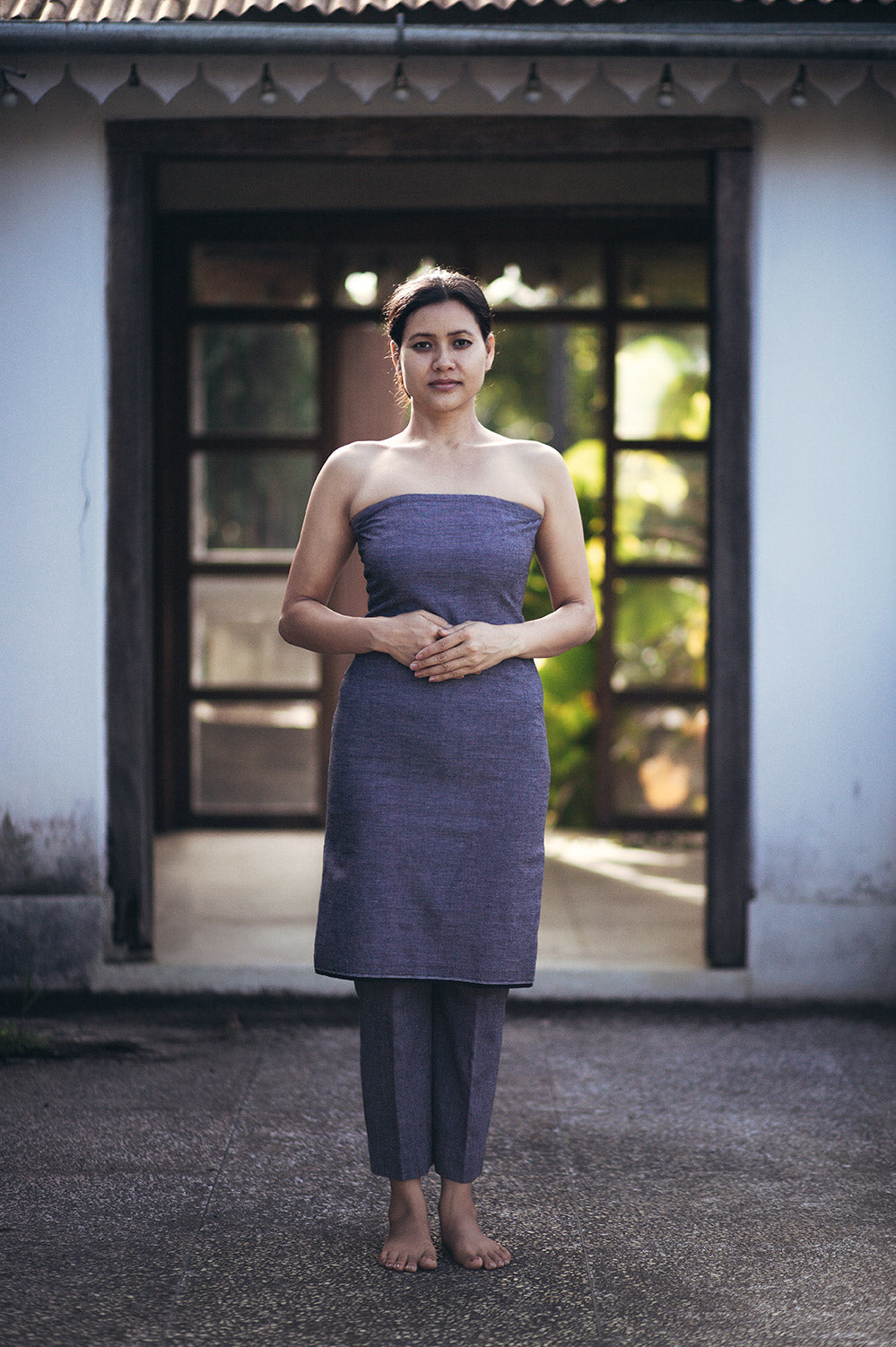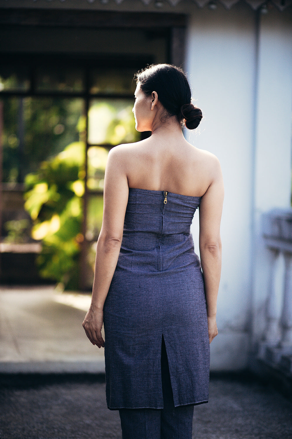 A straight-fitting, clean handwoven cotton tube top designed with elasticated band under the arms for a secure fit, and finished with a discreet zip at the back.