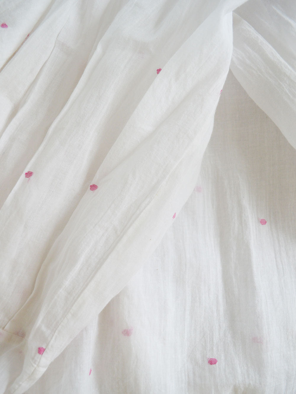 Material : 100% pure cotton. Pre-Shrunk. Light weight and translucent. Woven by weavers of Bengal. Camisole is 100% Rayon.