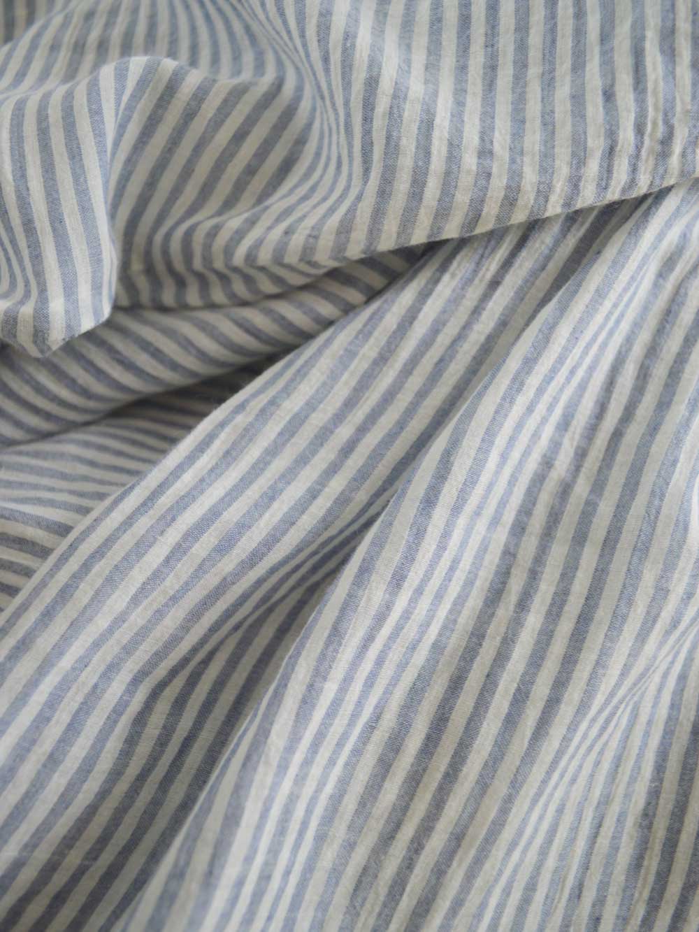 A sleeveless cotton midi dress featuring soft vertical stripes in sky blue and white. Designed with a V-neck and a lightly gathered front cinched with a delicate fabric band, adding shape without compromising comfort. Comes with a Camisole.