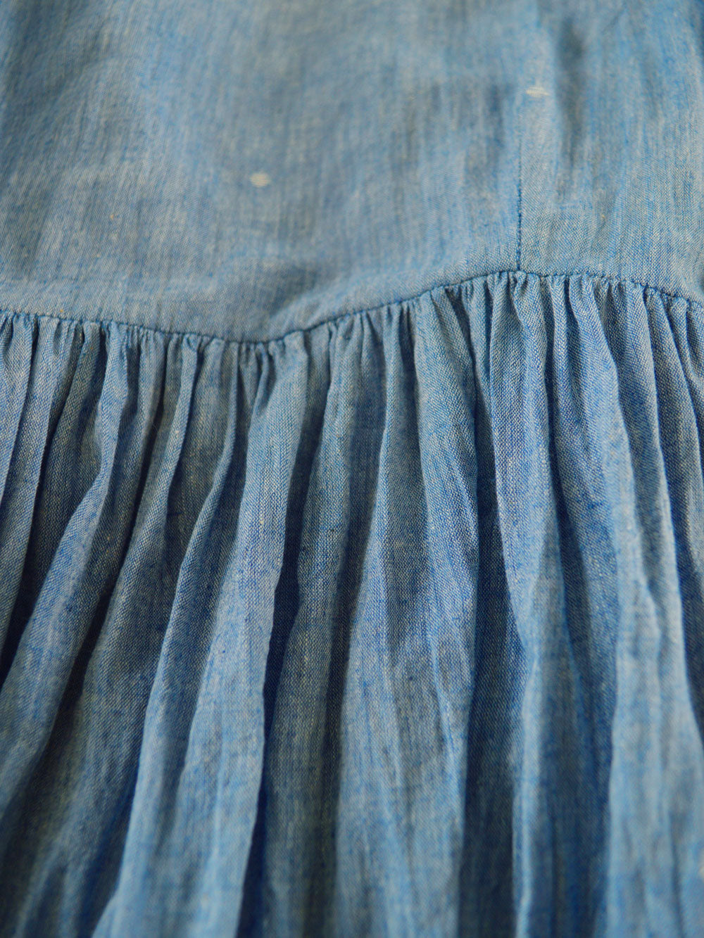 A soft, handwoven cotton dress in powder blue with subtle dot detailing. Features a flattering empire waist, 3/4 sleeves, and a gently flared silhouette for ease and movement. Includes a Camisole.
