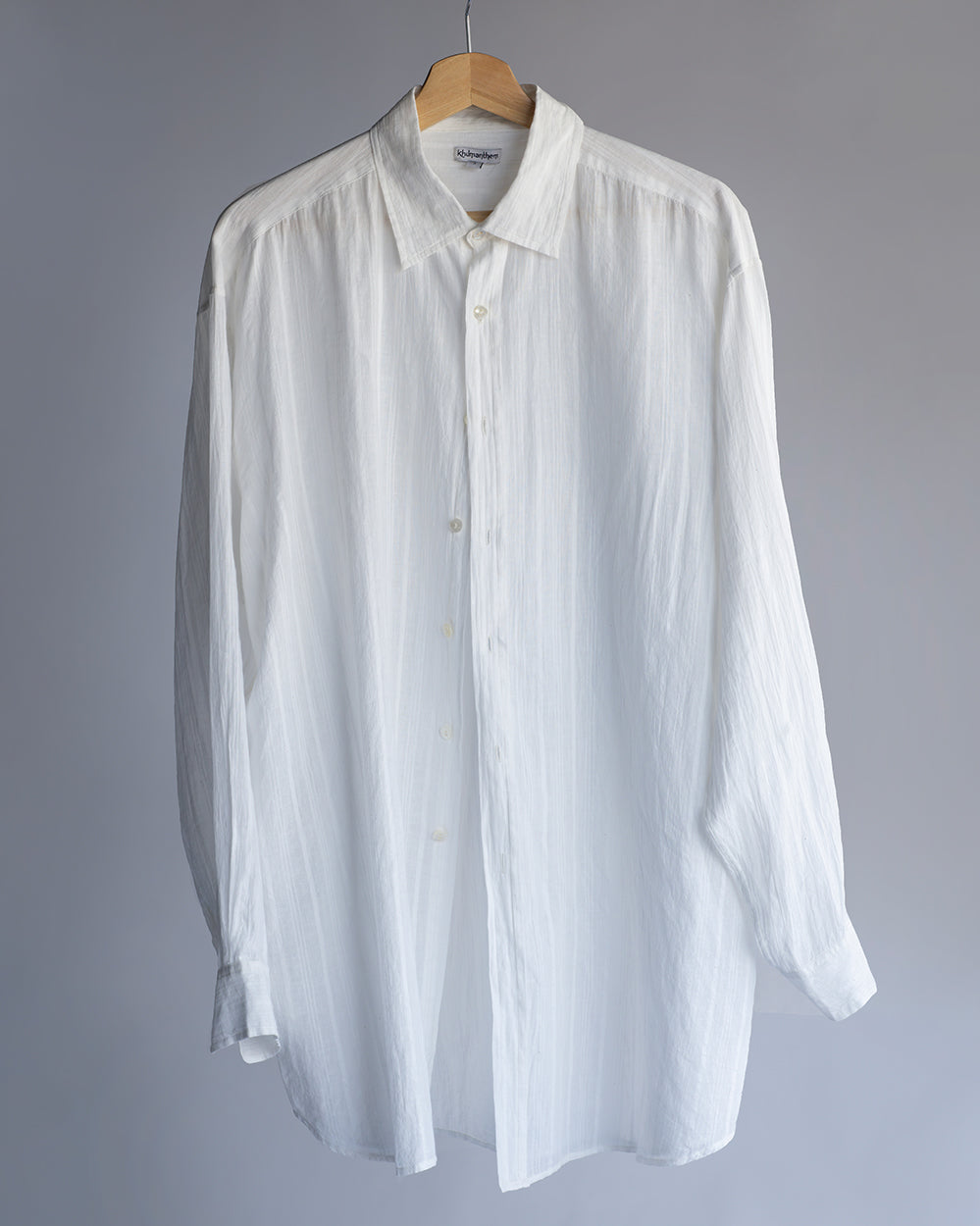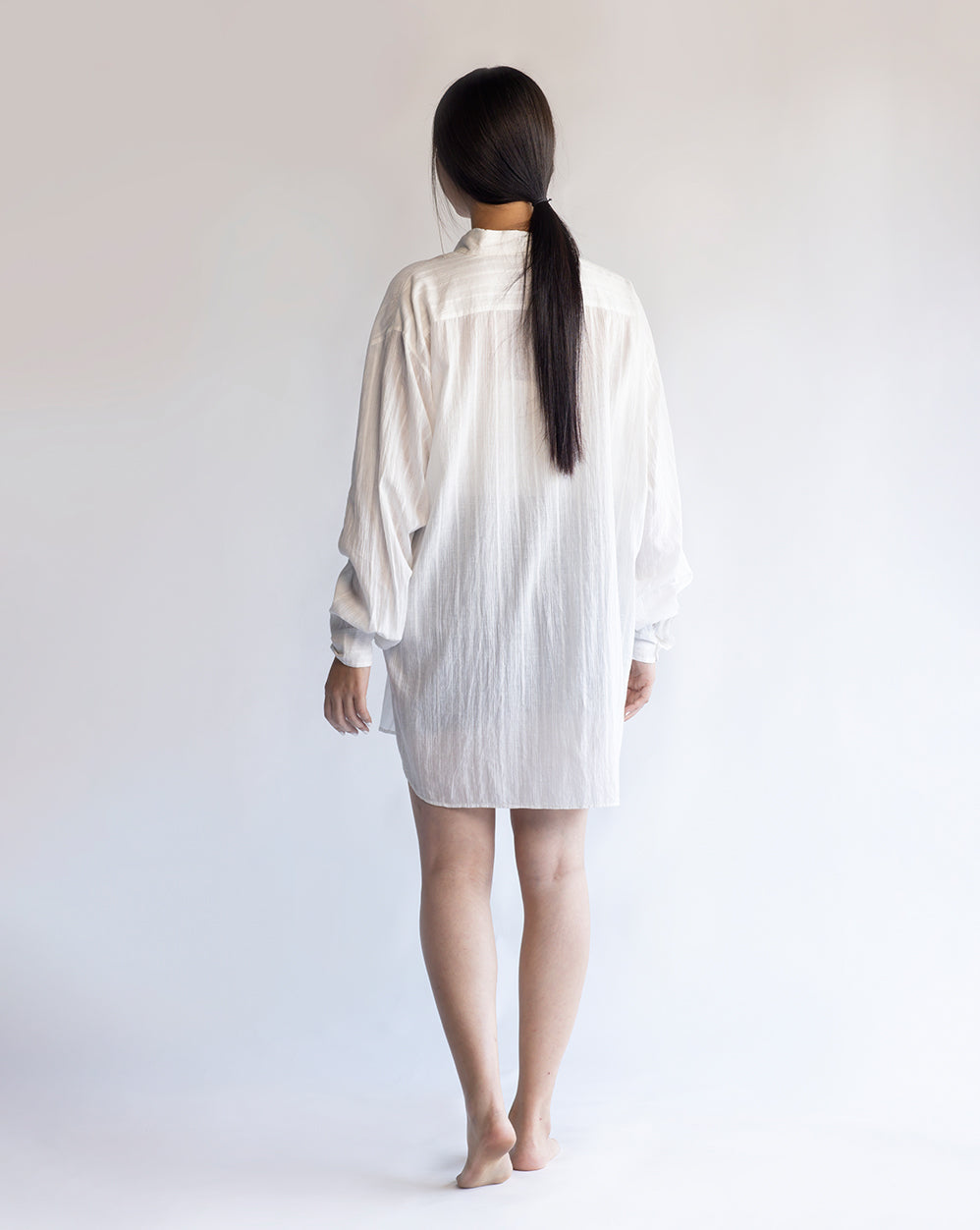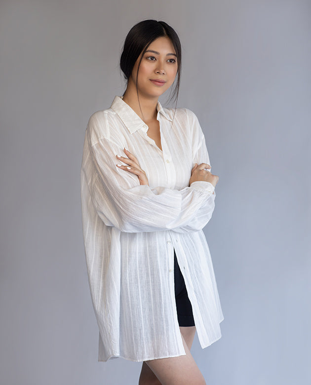 Striped handwoven cotton boyfriend shirt. This shirt has a roomy fit and can be worn buttoned up or buttoned down. Perfect for both formal and informal occasions.