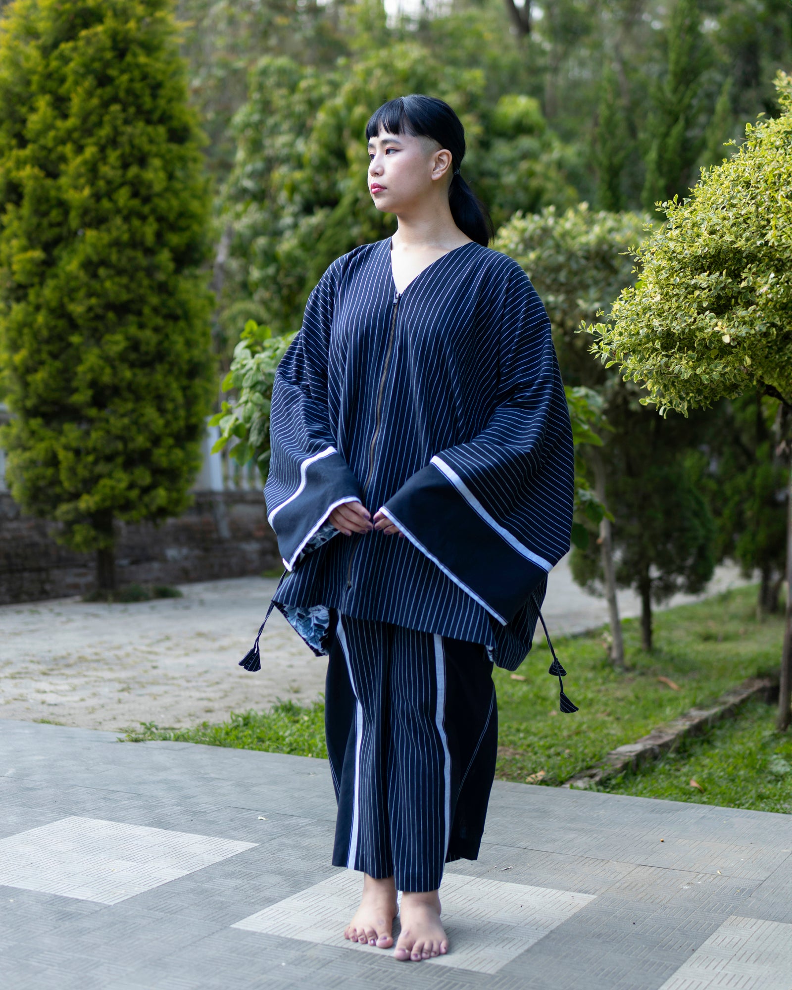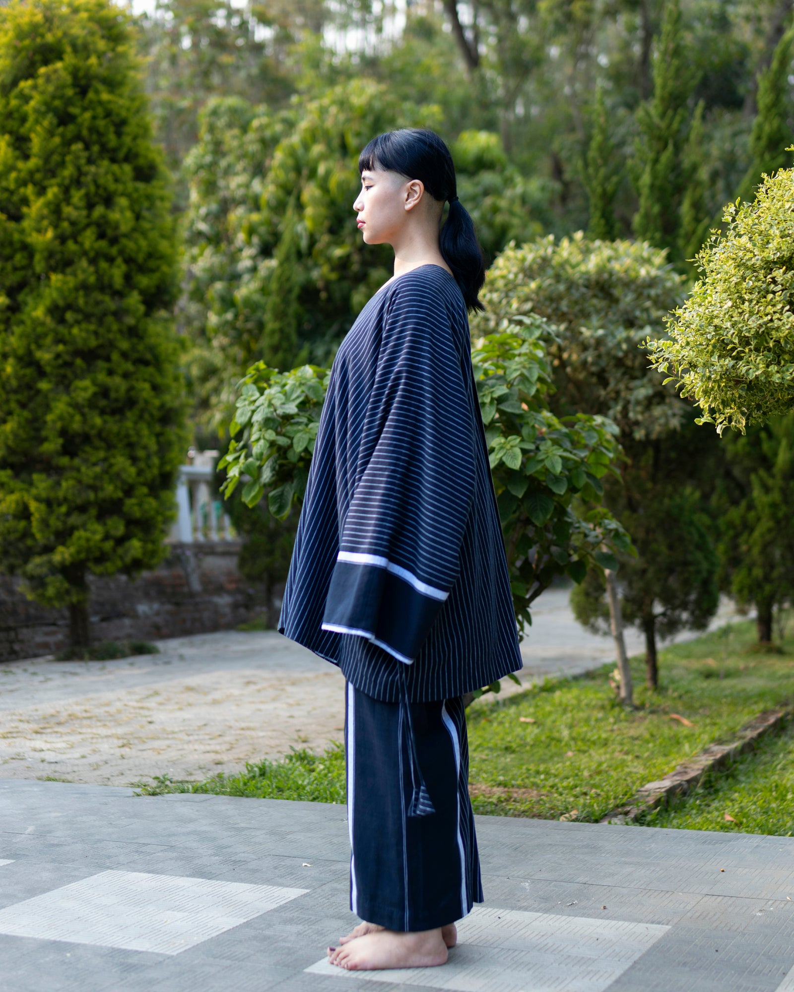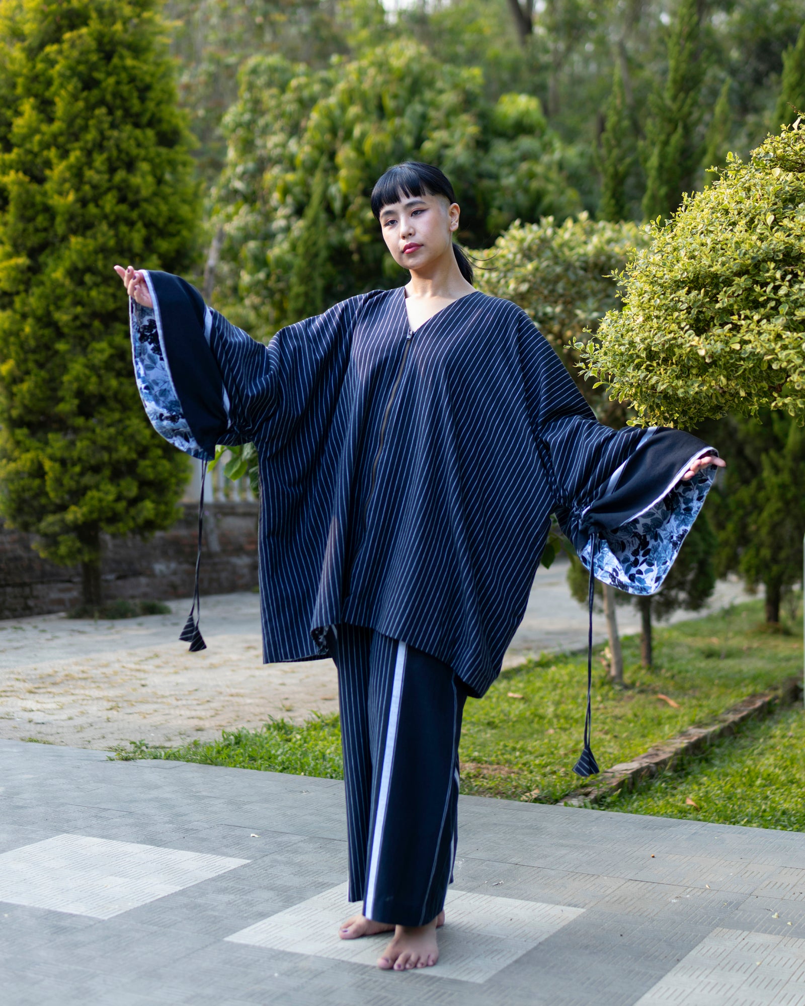 The Kyoto coat draws its silhouette from the timeless Japanese Haori, offering a harmonious balance of roomy fit and stylish drama.