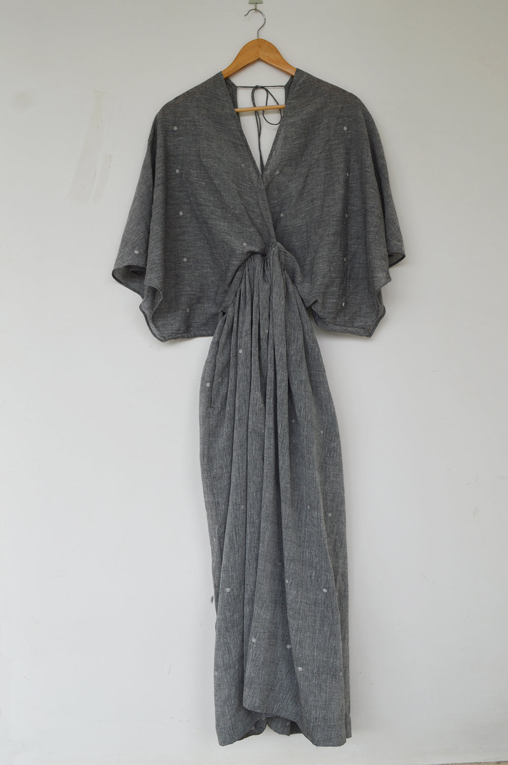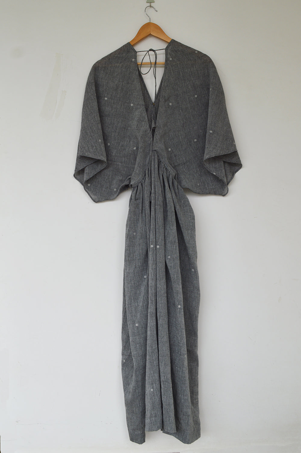 The New moon dress  features a deep v-neck and is crafted from soft hand-woven cotton fabric embellished with hand made white dots. With it’s relaxed fit and deep pockets, this dress is perfect for a stroll down the beach. Comes with an inner skirt.