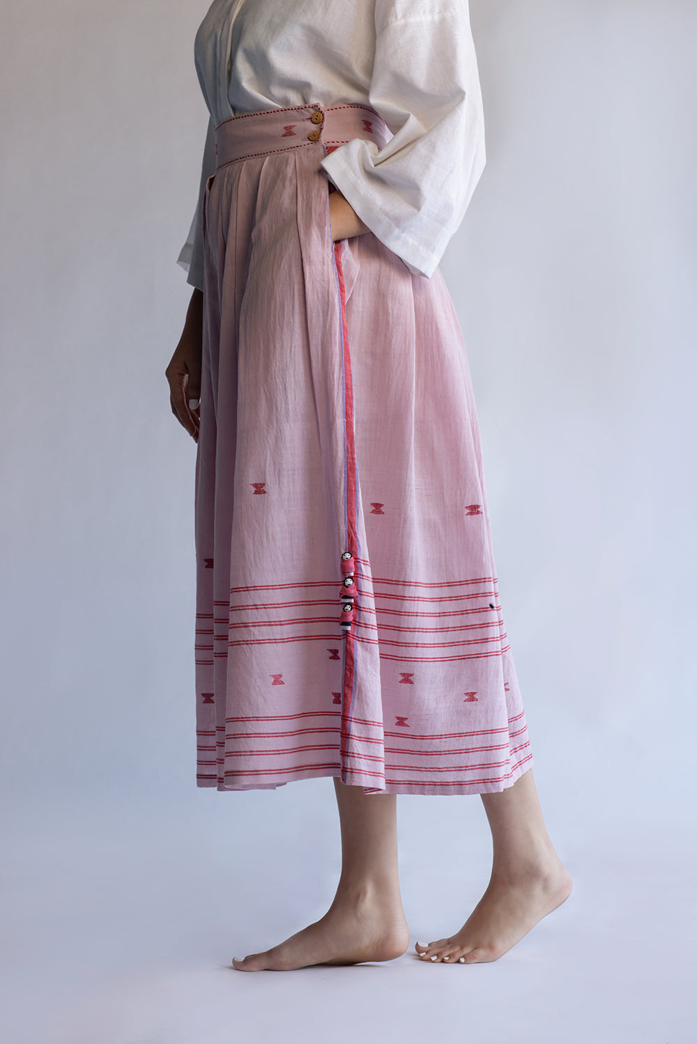 Our dusty Pink Lemonade Culottes are hand-crafted in cotton and feature a mid-rise waist, a wide waistband, side slit pockets and a flared fit.