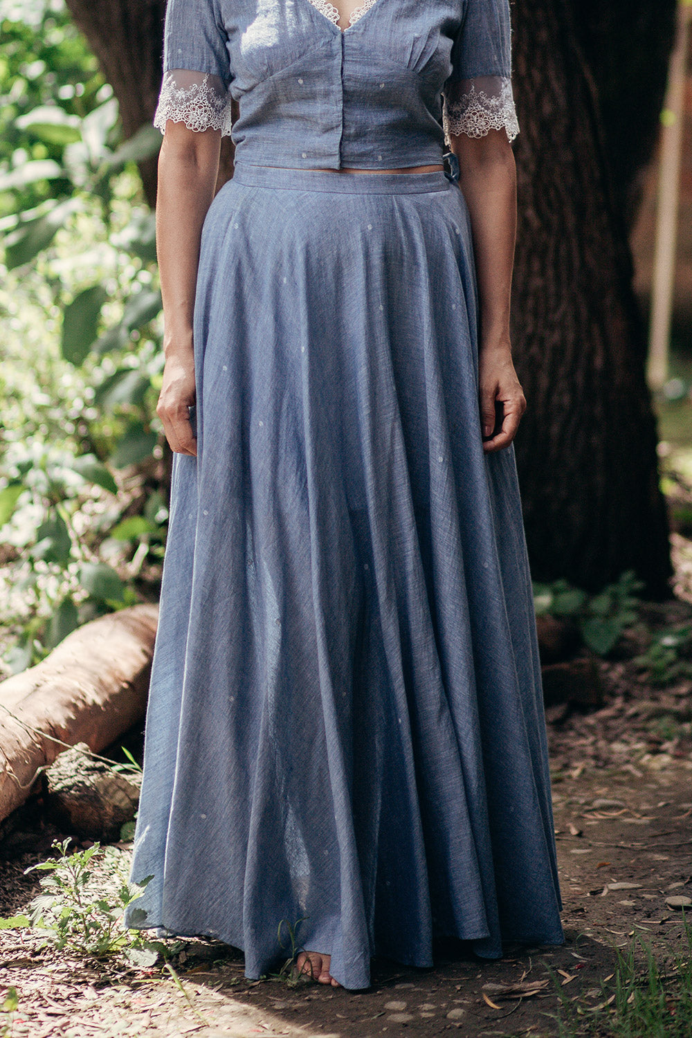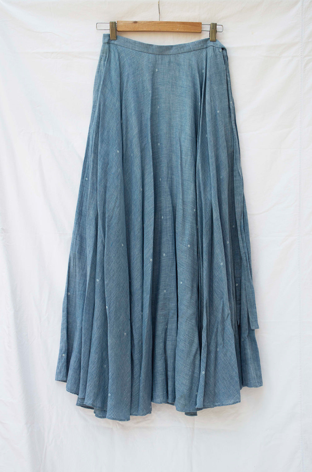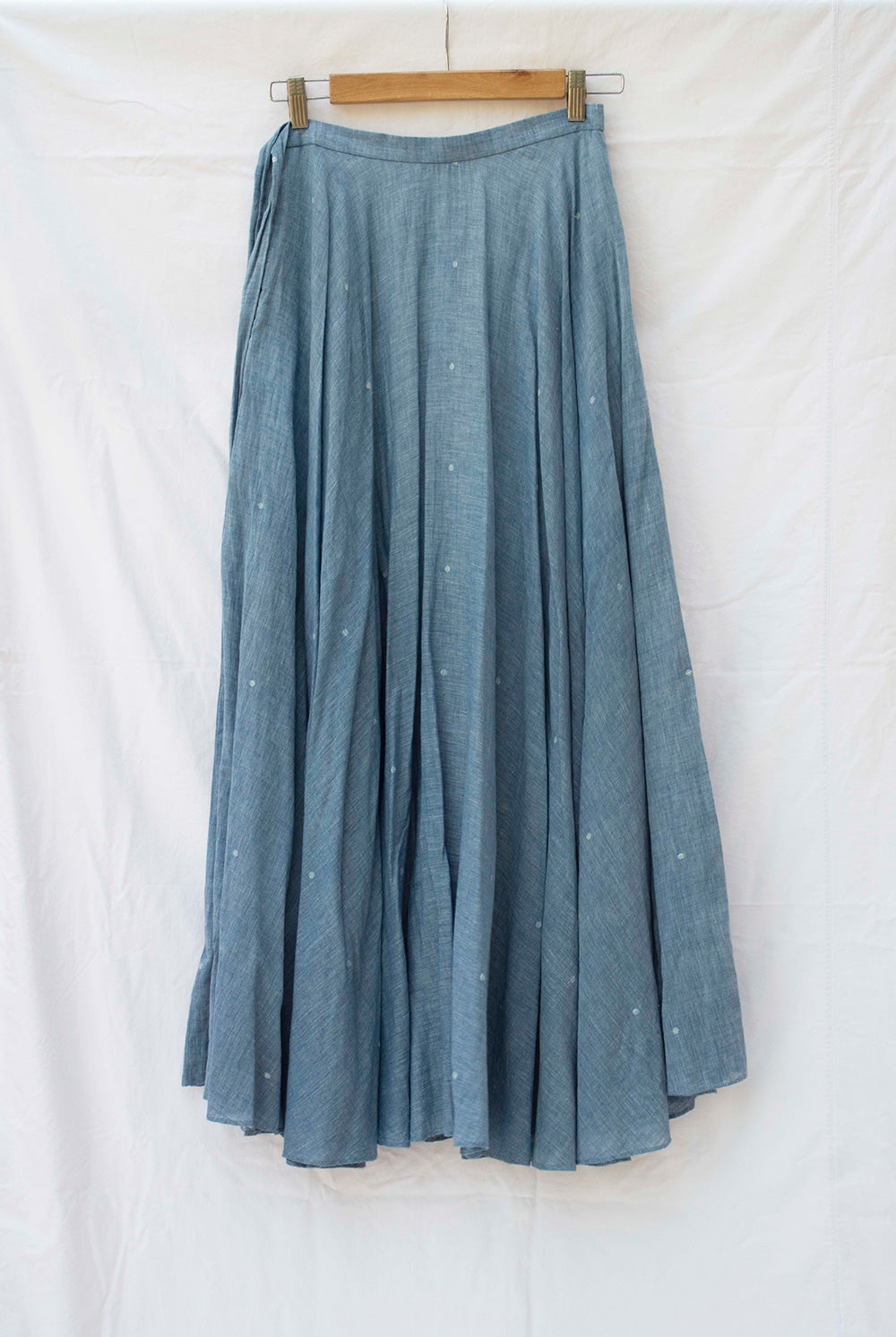 Make a sweeping statement with the Seaside Maxi skirt, a full-circle skirt dotted delicately using the extra-weft technique. Generous, deep-set pockets blend function with grace, making this piece as practical as it is poetic.